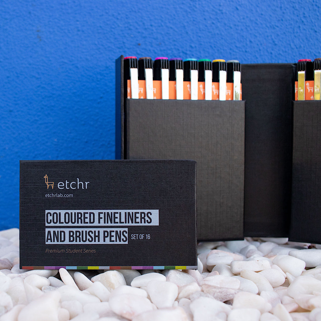 Etchr Fine-liner & Brush Pen | Coloured, set of 16