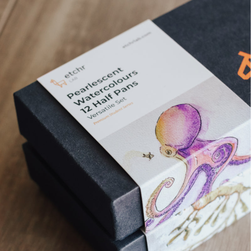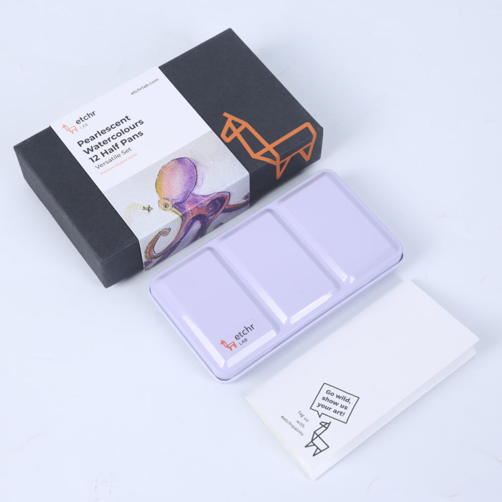Etchr Pearlescent Watercolours | Versatile 12 Half Pan Set