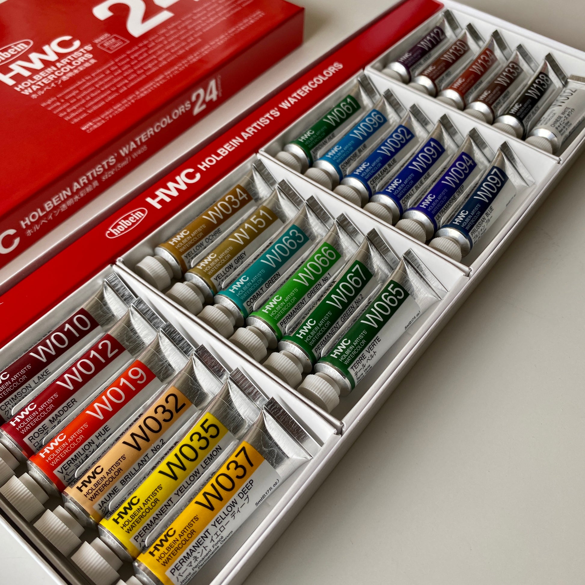 This Holbein Artists’ Watercolour 24 colours set (5ml tubes) inclusive of: