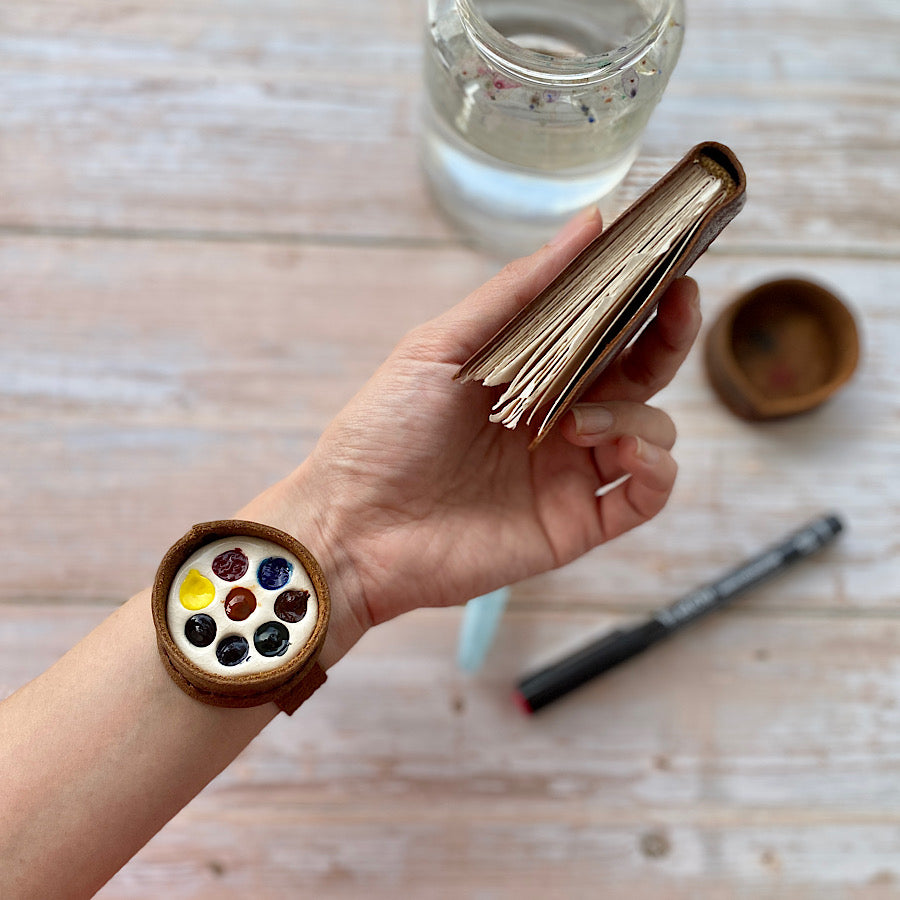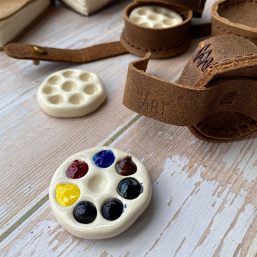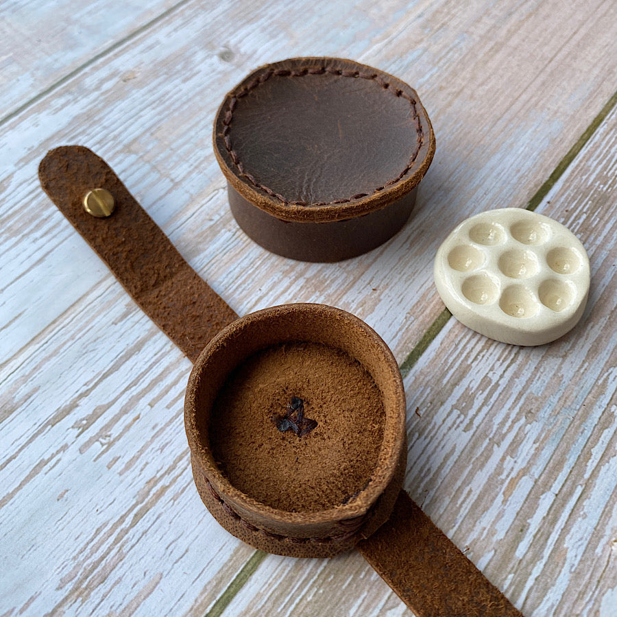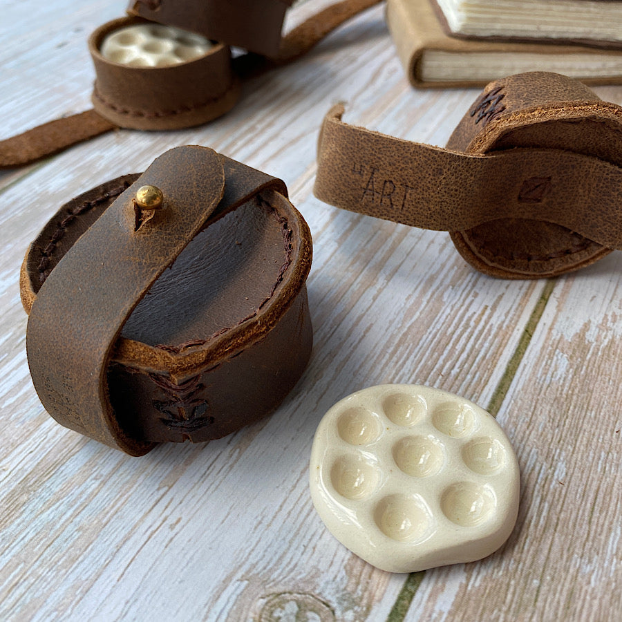 Tiny enough to strap it around most art cases or any carrier, this artisanal 8-well ceramic mini palette measures approximately 4cm in diameter holds your essential colours to go, and you can technically bring it anywhere you go!