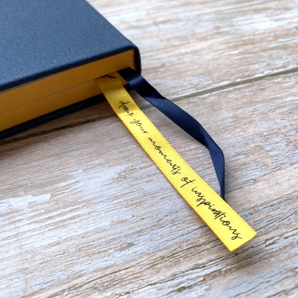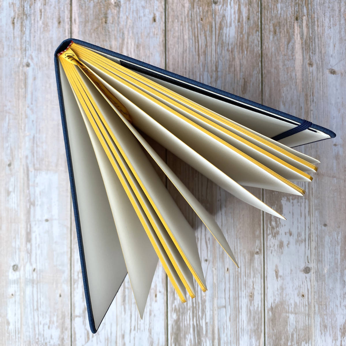 - With an elastic band closing and a bookmark